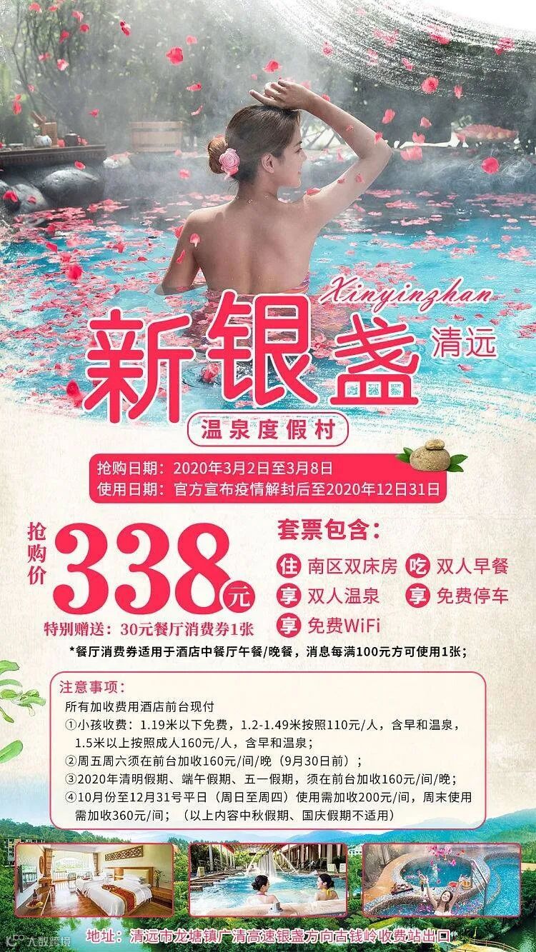 ③ 双人无限次温泉,泡温泉时间09:00-23:30,每间房最多免2位1.2米以下儿童;
