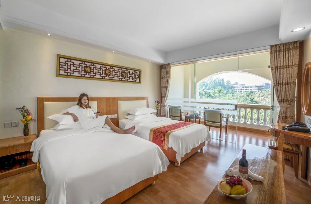 ① 新银盏温泉度假村南区豪华双床房住宿1间1晚(2张1.2米床,每间房均带阳台);