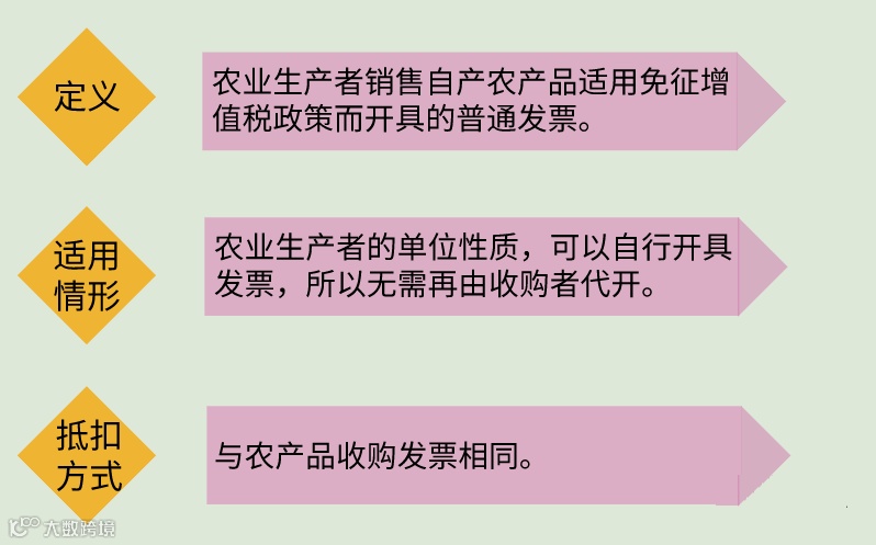 农产品销售发票是指农业生产者销售自产农产品适用免征增值税政策而开具的普通发票。
