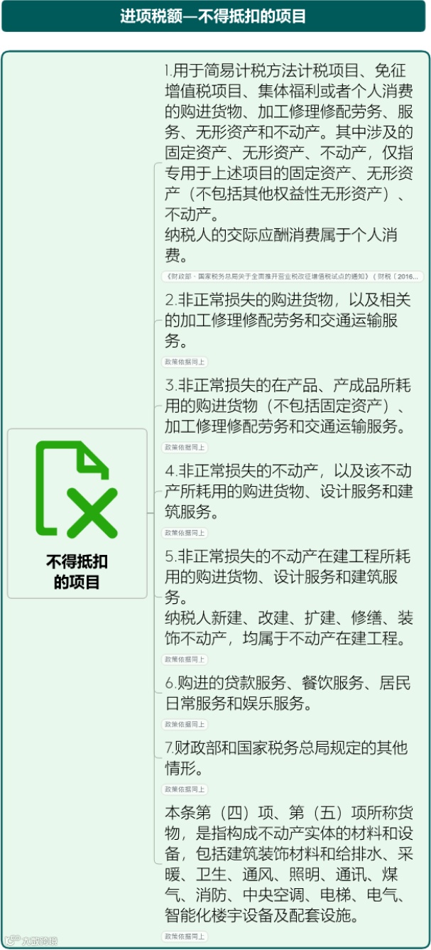 不能抵扣进项税的所有情形下图全部涵盖了,一起学习一下吧~