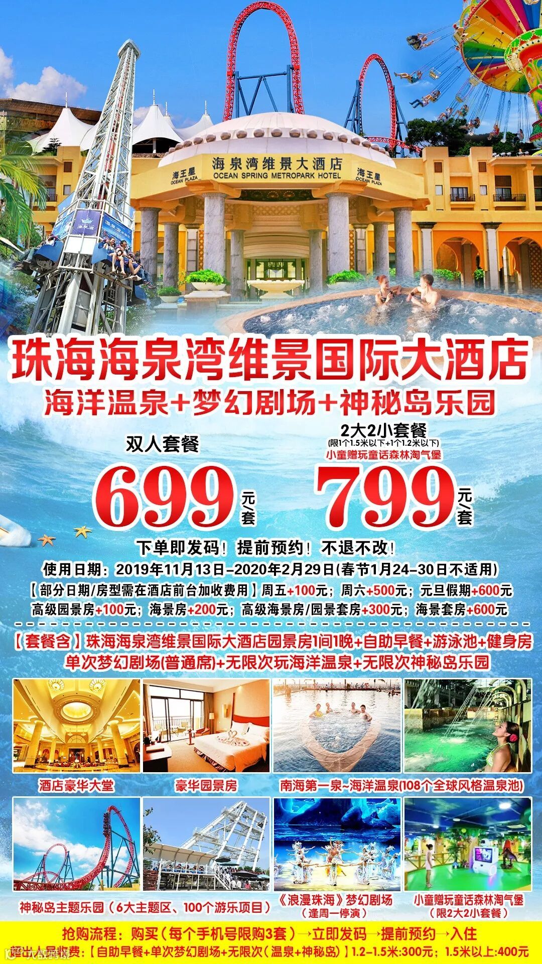 珠海海泉湾度假区海洋温泉占地4万余平方米,有“南海第一泉”的美誉,温泉富含钾、钠、钙、镁、硅、氯离子等30多种有益于人体的微量元素及矿物质,具有良好的纤体、美肤、活血等保健功效。