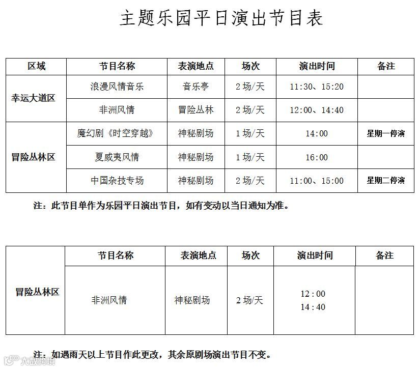注:表演节目内容仅供参考,具体以景区公布为准!