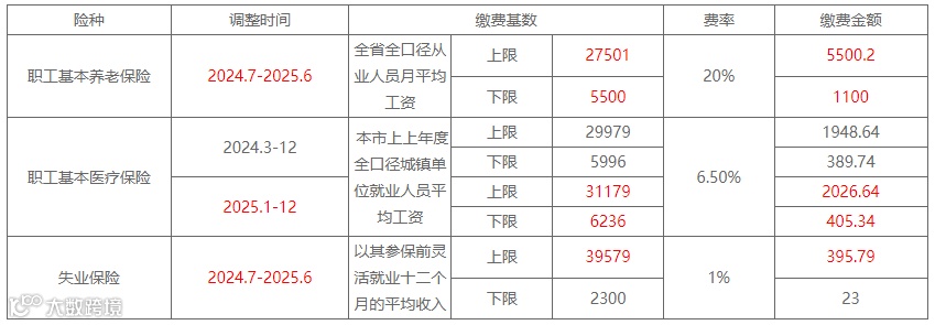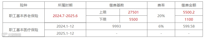 企业职工基本养老保险为2024年7月1日至2025年6月30日;