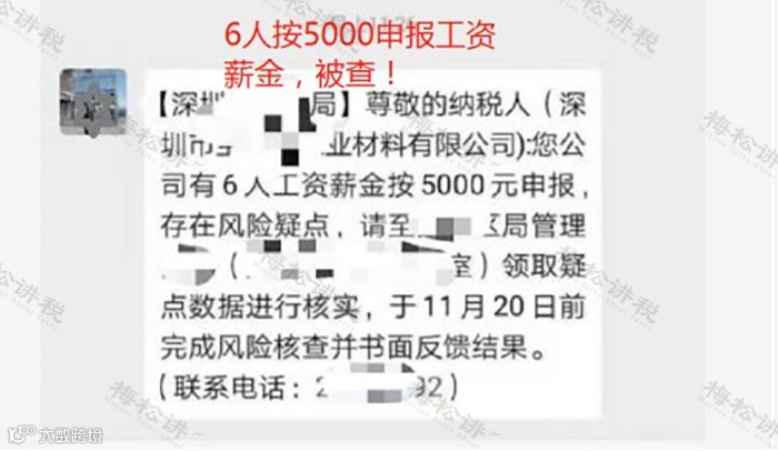 深圳某公司有6人工资按5000元申报,存在风险疑点,被税局邀请上门领取数据进行核实,并写书面反馈报告。
