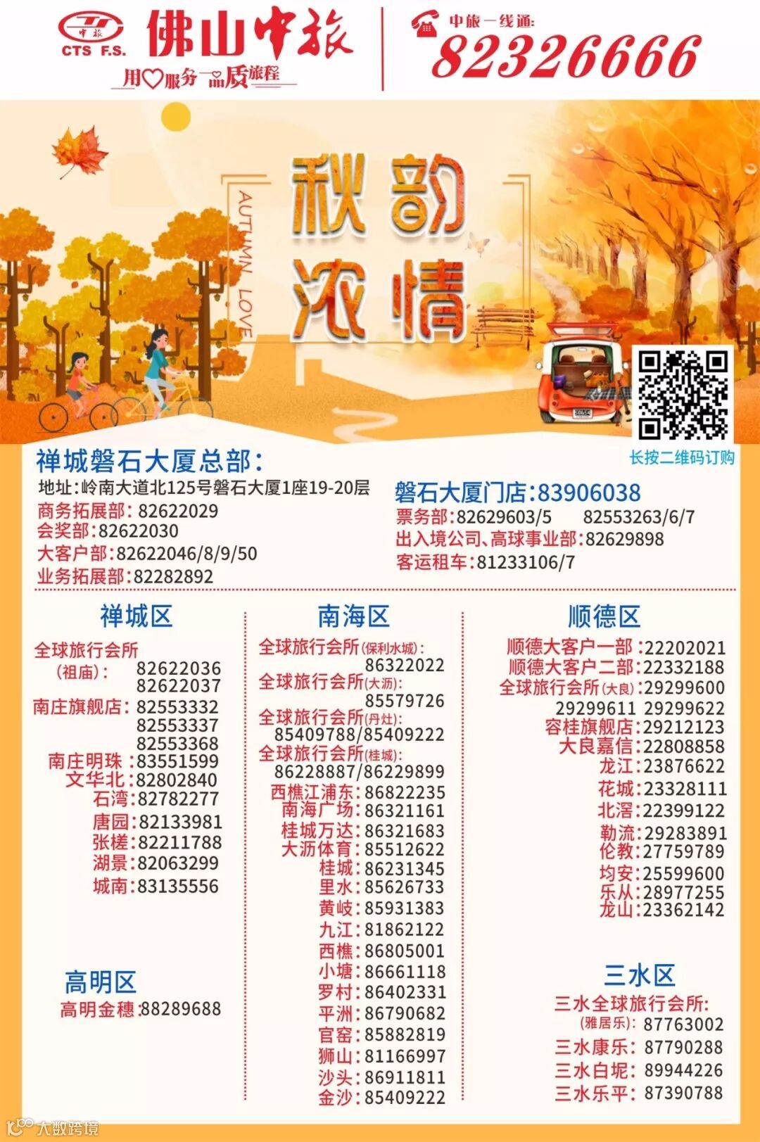 咨询或预定可联系您身边的佛山中旅营业部哦
