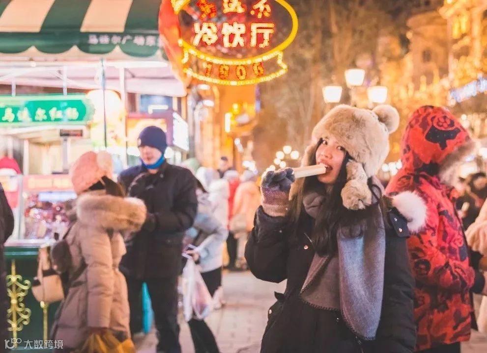 中央大街绚烂的灯光,映衬着每一个来往人们的脸。