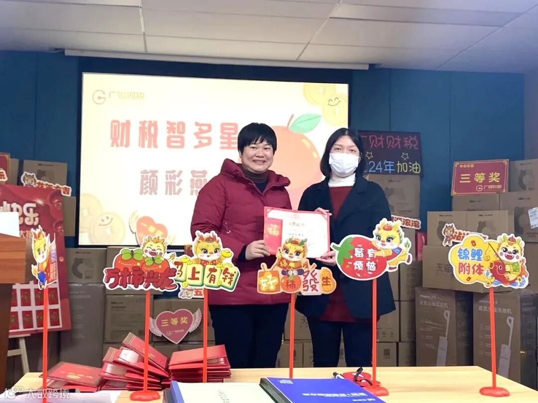 定格璀璨,共襄辉煌,广财公司总经理欧建飞为获奖同事颁奖。