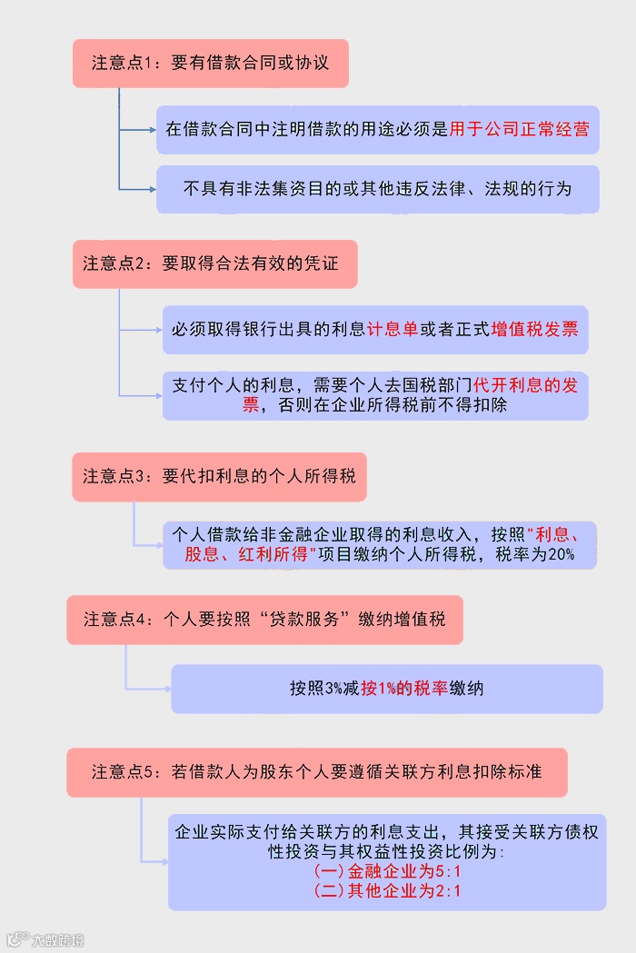 4、判断借款人是否是公司的关联方,如股东借款给企业,关联债资比限制,金融企业为5:1,其他企业是2:1。超过部分的利息无法税前抵扣。