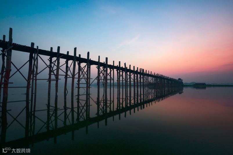 整桥都是用缅甸最著名的柚木做成,历经岁月,至今仍可正常使用。傍晚时分,也可乘船,在河上远观日落余晖洒在这百年的建筑上,说不出来的祥和。