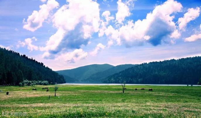 湖畔有个牛羊成群的牧场,充满藏区的生活情趣