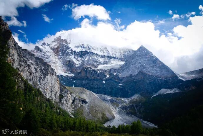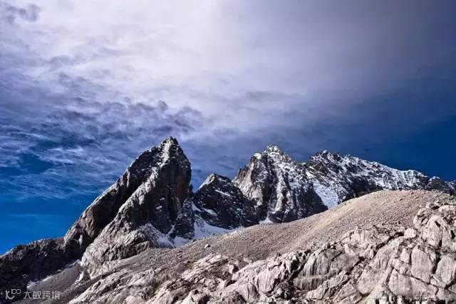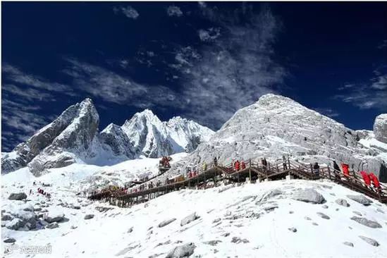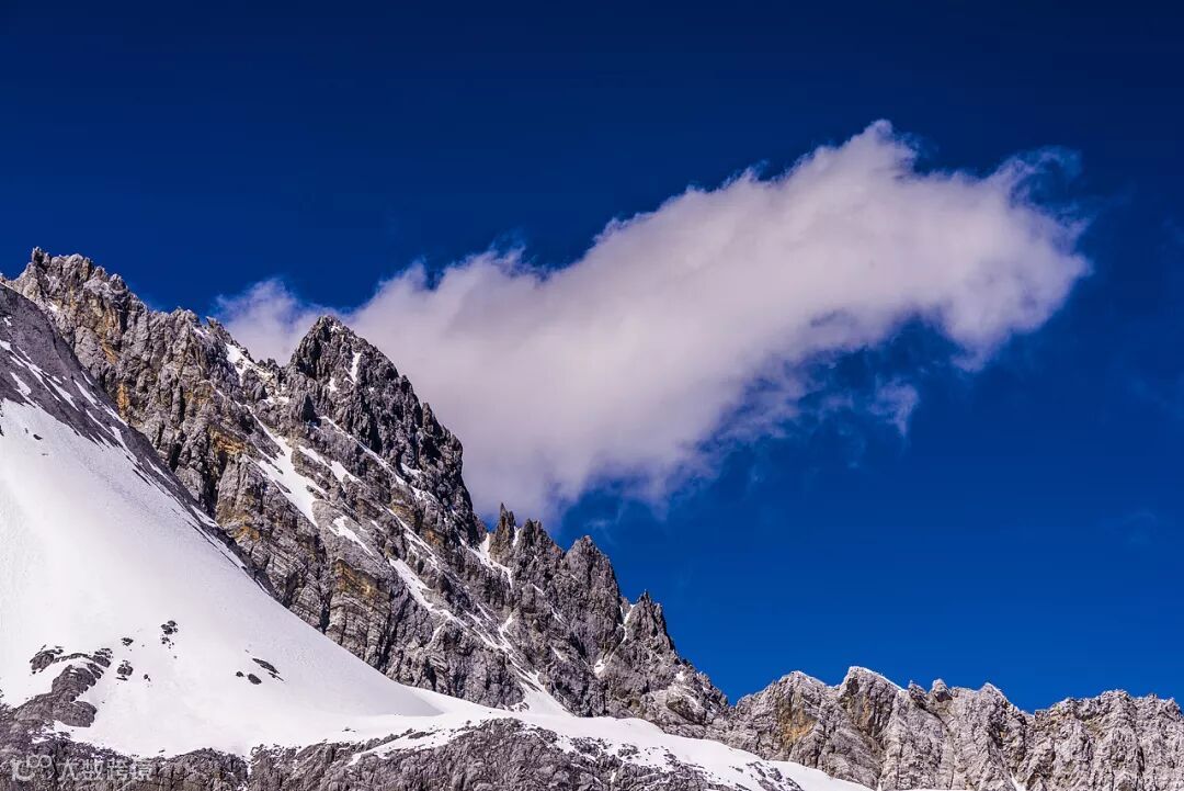 冰雕玉砌的玉龙雪山拔地而起,直插云霄,气势磅礴。