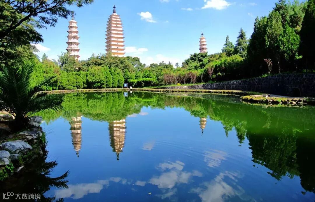 三塔倒影公园位于崇圣寺三塔以南1公里处,公园坐北朝南,背靠三塔以园内的潭水能倒影三塔雄姿而得名。