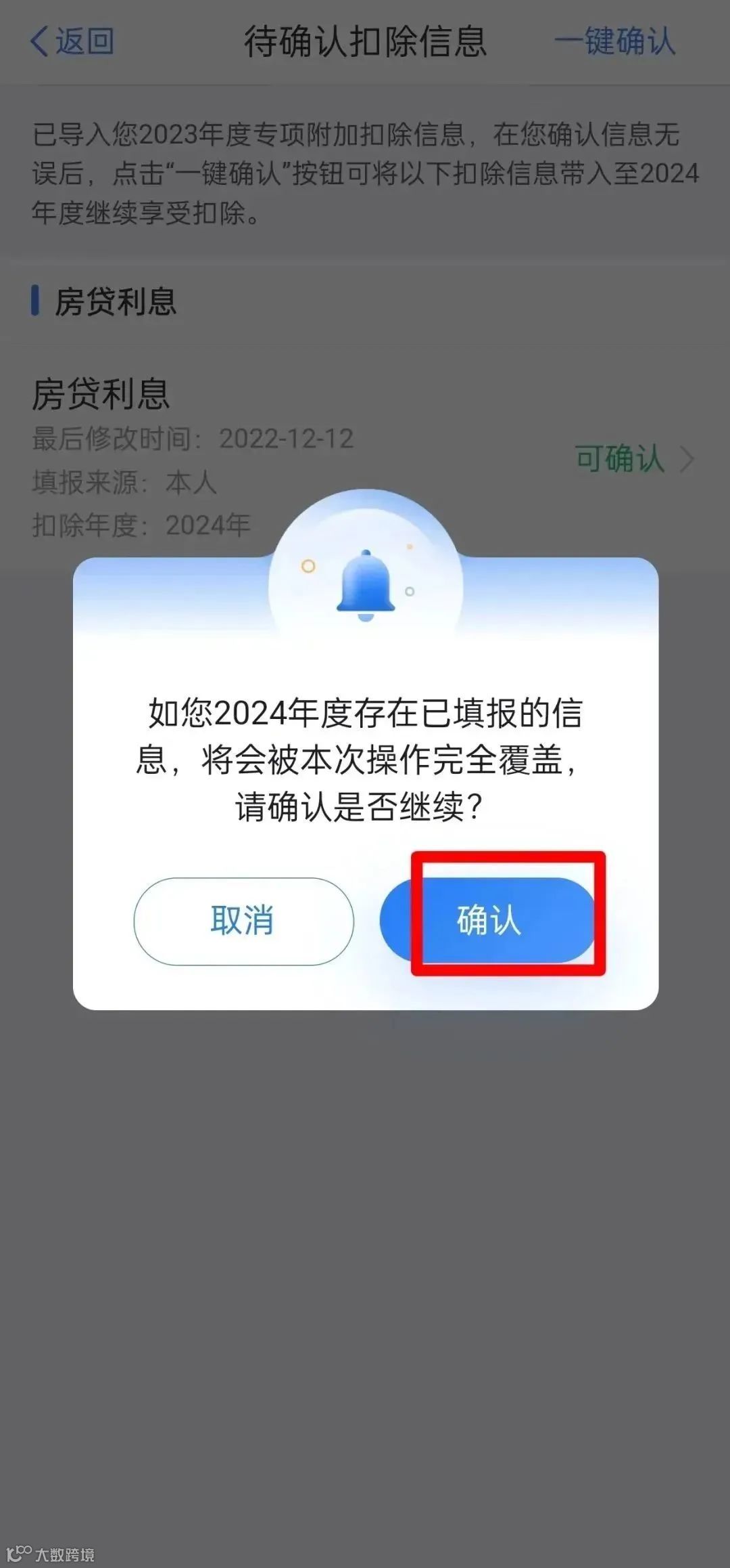 如您2024年个人所得税专项附加扣除信息无变动,仅需在2023年度基础上完成确认。