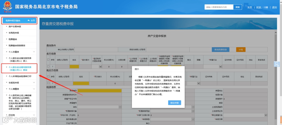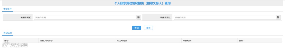 第三步:个人股权转让可点击【个人股东变动情况报告表(扣缴义务人)查询】,找到对应信息进入修改。修改完后,可以进行查询。