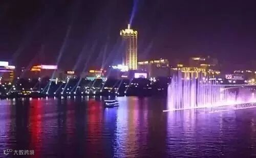 市区沿江山体、瀑布、音乐喷泉
