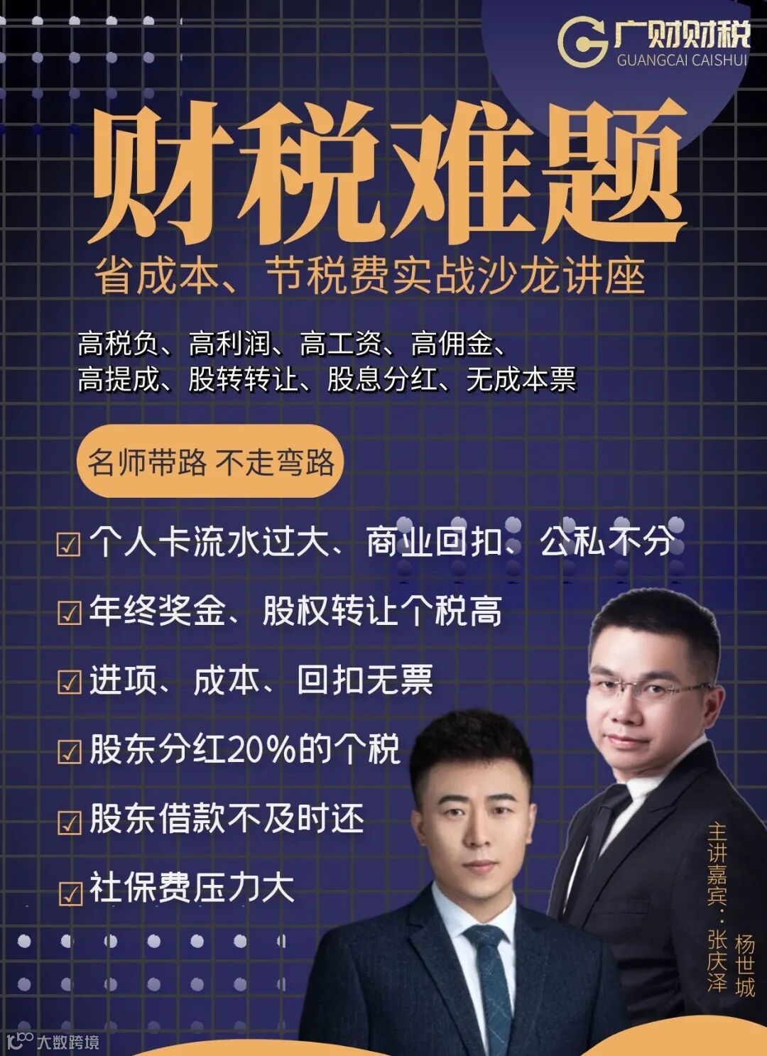 针对企业“ 高税负、高利润、高工资、高佣金、高提成、股权转让、股息分红、无成本票”的税务难题,在11月15日,我司邀请了金财控股的两位企业税筹专家杨世城老师、张庆泽老师,为企业家们开设了“省成本、节税费”的实战沙龙讲座。