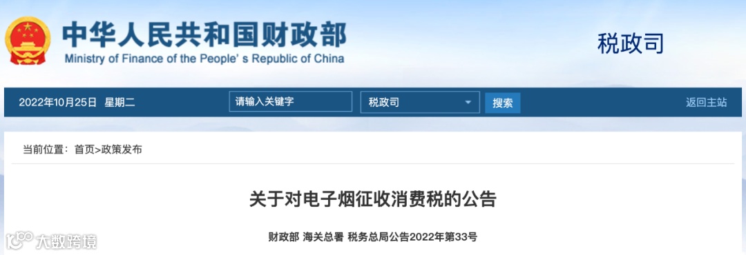 为完善消费税制度,维护税制公平统一,更好发挥消费税引导健康消费的作用,现就对电子烟征收消费税有关事项公告如下: