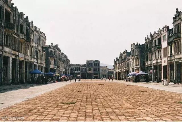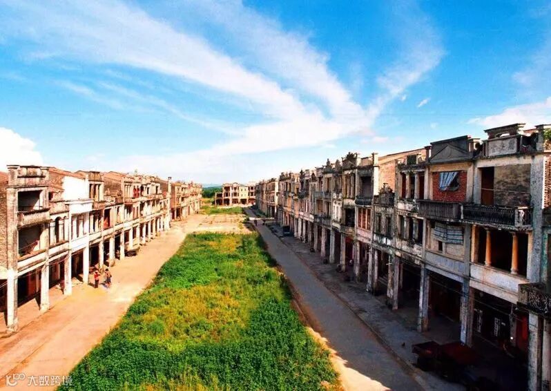 梅家大院于1931年由台山当地华侨以及侨眷侨属创建,108幢骑楼建筑呈长方形排列,鳞次栉比,每一幢的外观各不相同。骑楼群中间还留有40亩专供商贩摆卖商品的市场空地,俨如一座小方城。
