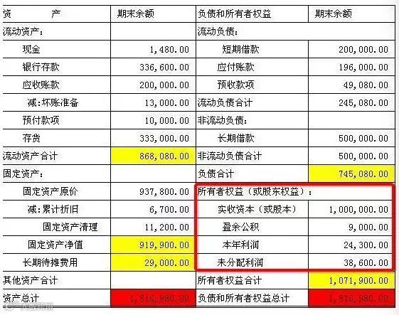 资产=负债+所有者权益这个公式,是永远成立的。我从网上找了一张公司的资产负债表,可以简单看看。