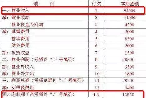 我随便找了个利润表,大家可以看到一个公司有营业收入,扣掉各种营业成本,还有各种费用,各种税收,最后剩下的是净利润。