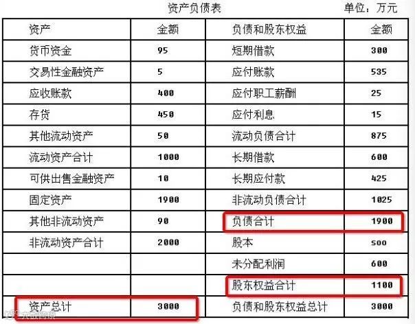 那么对应着财报里的资产负债表,你有300万的资产,负债200万,所有者权益是100万。所以,资产=负债+所有者权益。