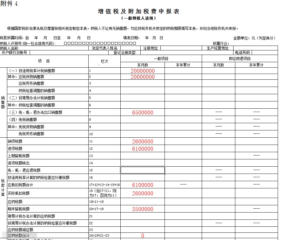 《增 值 税 及 附 加 税 费 申 报 表》主表填报