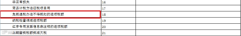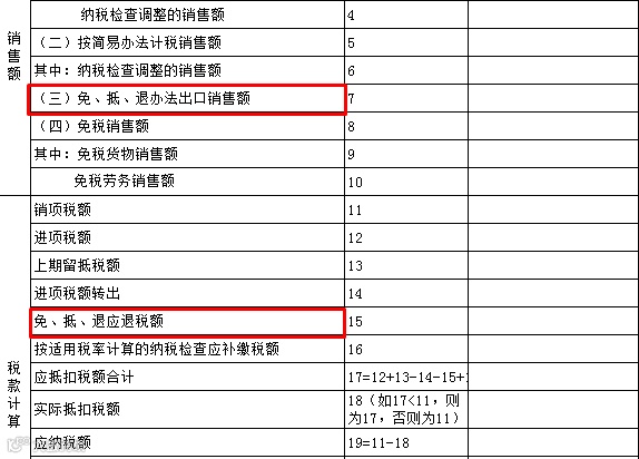 第18栏“免抵退税办法不得抵扣的进项税额”:反映按照免抵退办法的规定,由于征税税率与退税税率存在税率差,在本期应转出的进项税额。