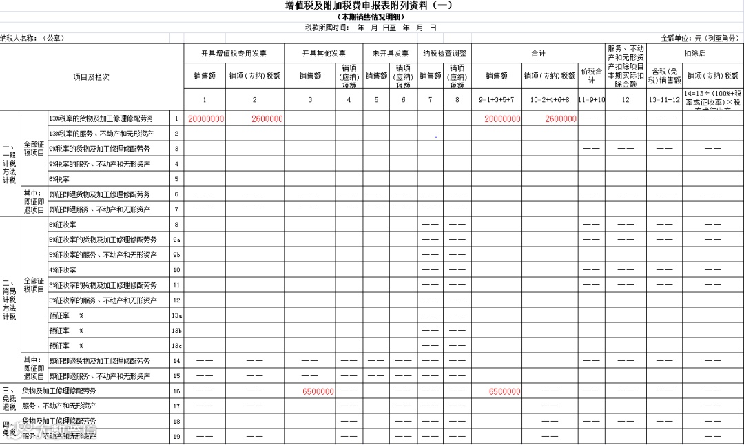 3、《增值税及附加税费申报表附列资料(一)》主表填报