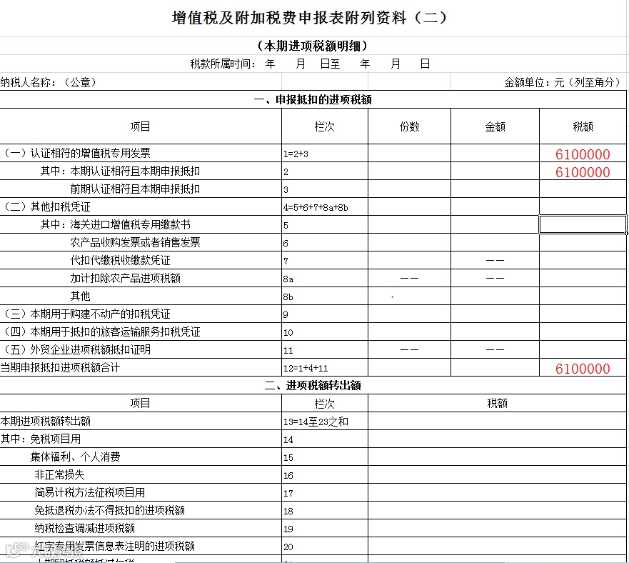 《增值税纳税申报表附列资料(二)》填报