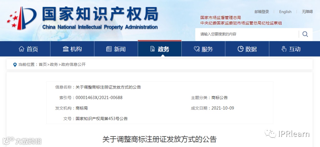 二、设立过渡期,2021年10月15日至12月31日期间,公告注册及其他商标申请产生的商标注册证,以纸件形式提交商标申请的寄发《领取商标注册证通知书》,注册人按通知书指定网址和提取码,登录中国商标网获取电子商标注册证,同时寄发纸质商标注册证;以电子方式提交商标申请的发放方式暂时不变。