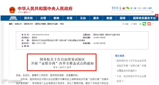 取消审批!自2019年12月1日起,上海、广东、天津、福建、辽宁、浙江、河南、湖北、重庆、四川等多地自由贸易试验区将施行“证照分离”,直接取消审批,改审批为备案。