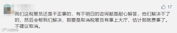 有些小伙伴觉得税管员都会耐心帮忙解答问题,不希望取消: