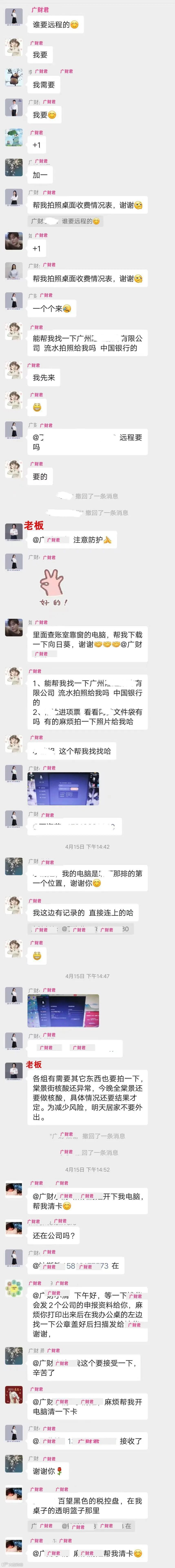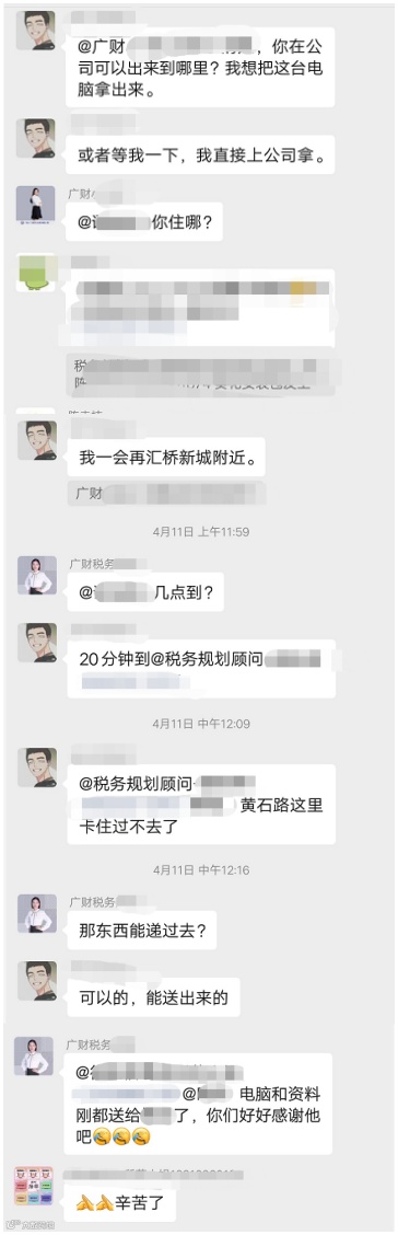 4月申报纳税期限即将逼近,广财君都非常担心,什么时候能解封?申报纳税不能耽误啊~,促使工作能顺利开展,启动了远程办公模式,在此感谢协助远程的中国好同事^-^