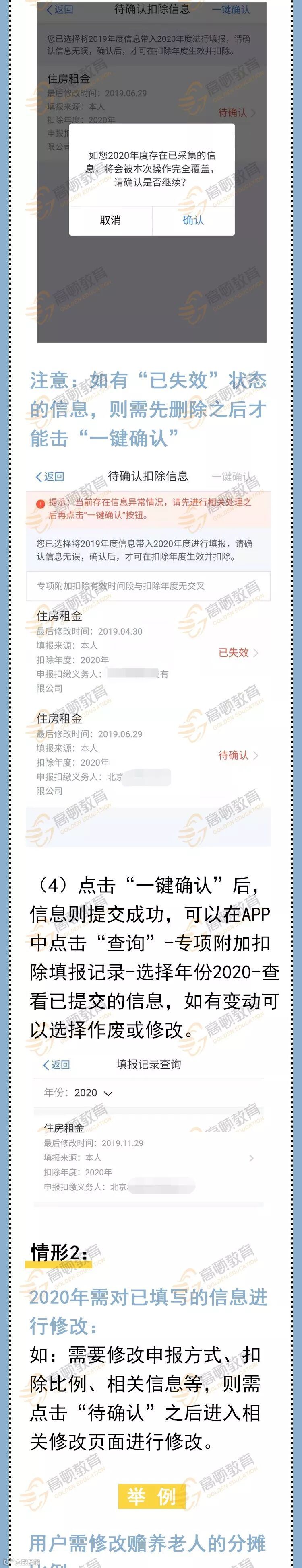 目前,自然人纳税人可以登录“个税手机APP”或“自然人办税服务平台(web端)”,自行将2019年度已填报未到期终止的专项附加扣除信息,通过“一键带入”功能,将本纳税年度的专项附加扣除信息带入到2020年度。