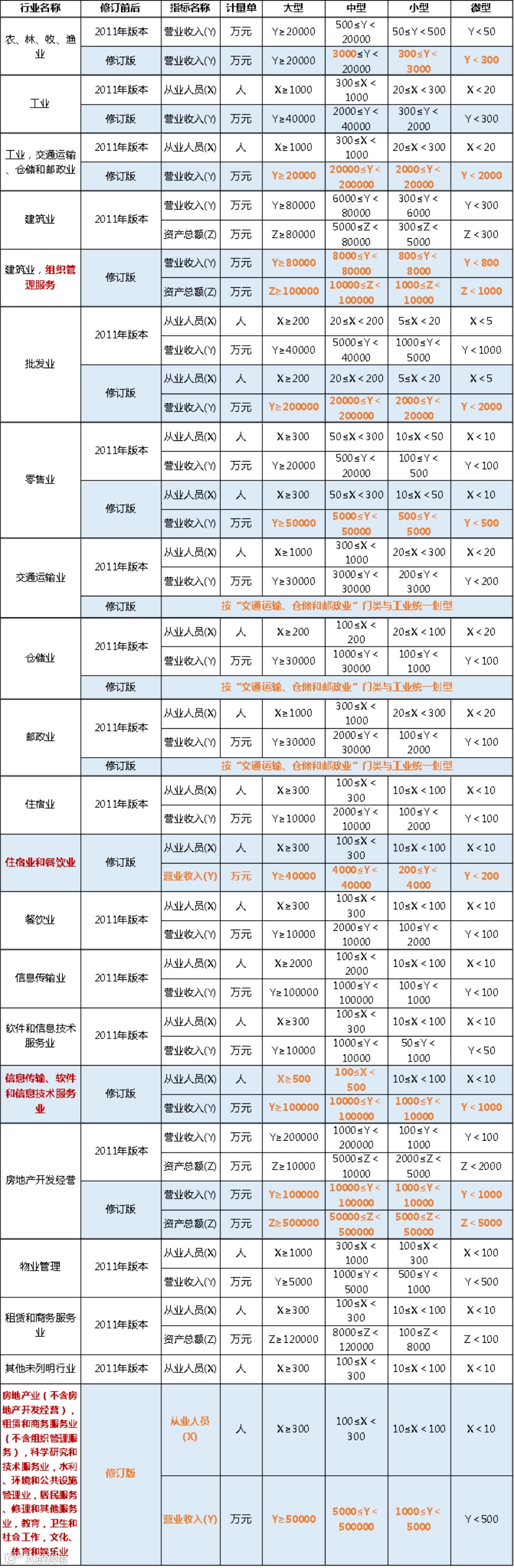 二、划型指标的修订