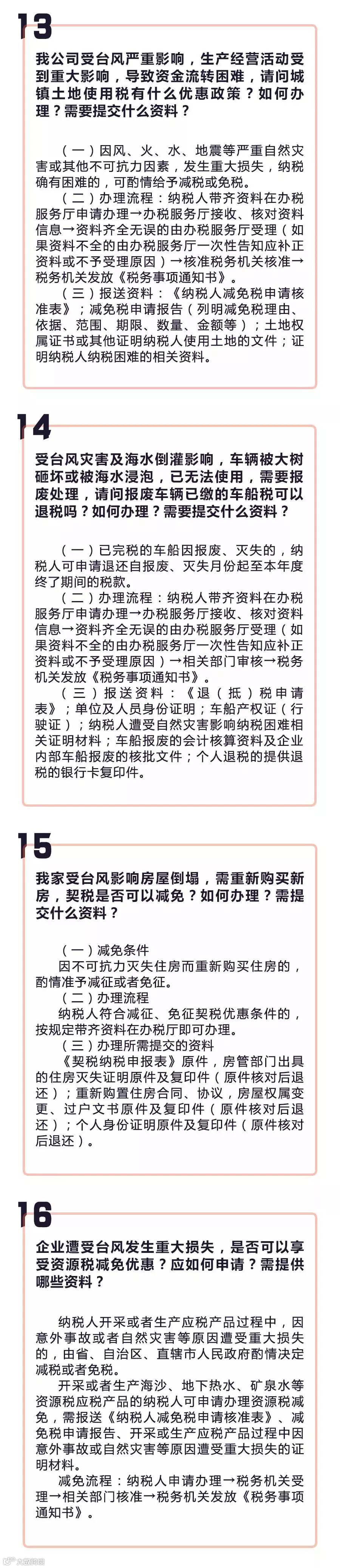 “台风灾后税收优惠政策,资产损失税前扣除、公益性捐赠税收优惠、银税互动免抵押贷款等超详细税收优惠政策解读!”