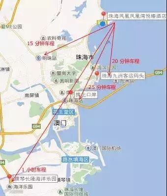距九洲港客运码头20分钟;距拱北口岸25分钟;