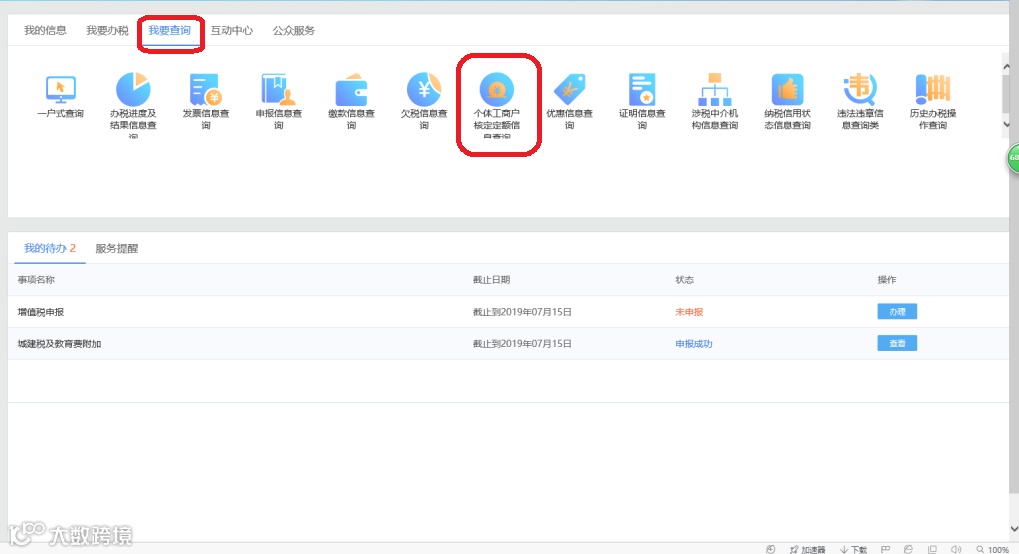 进入“我要查询”界面,点击个体工商户核定信息查询,先查好自己的定额信息。
