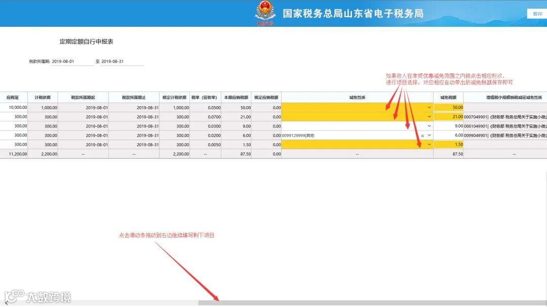 应税项填写完毕之后将下拉条向右拉,继续向后填写。