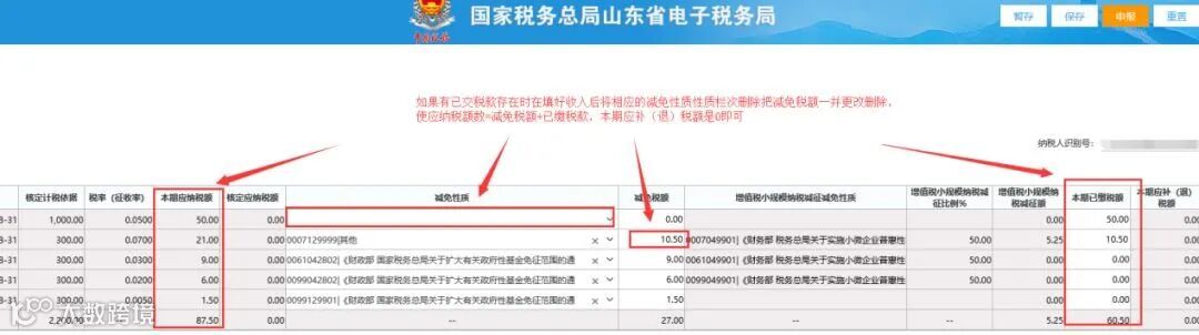 如果有代开专用发票并同时缴纳了个人所得税等税金后可以如下方填写,填写完保存申报即可。