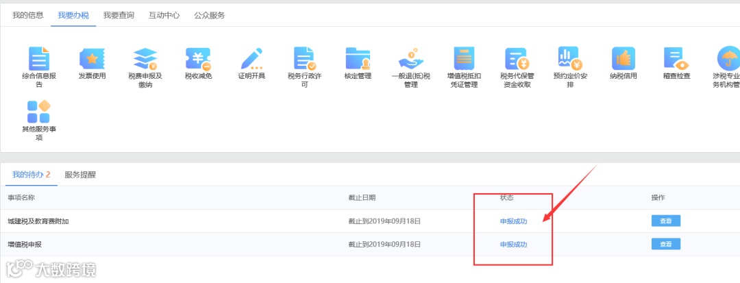 8、看我的待办中的项目,状态都为申报成功,这样申报就完成啦!