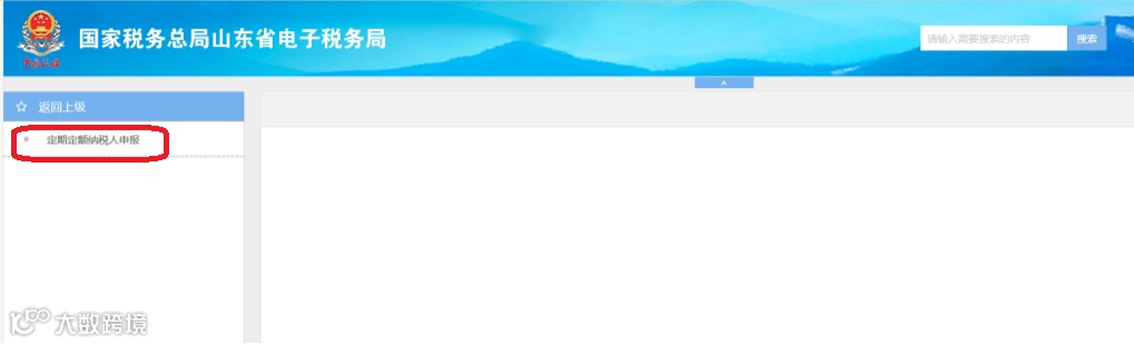 5、报完增值税之后再报定期定额,点击左边菜单返回上级字眼返回到电子税务局进入的首页,在上端搜索栏内输入关键字“定期定额”进行搜索。