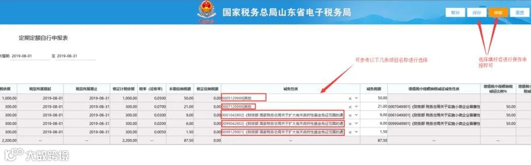 下面举例选一些减免性质,以没开票只领定额发票的收入为例可以这么选择。