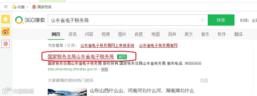 1、打开浏览器(ie,360,搜狗均可)搜索“**省电子税务局”,选择有官网字样标注的点击进入。