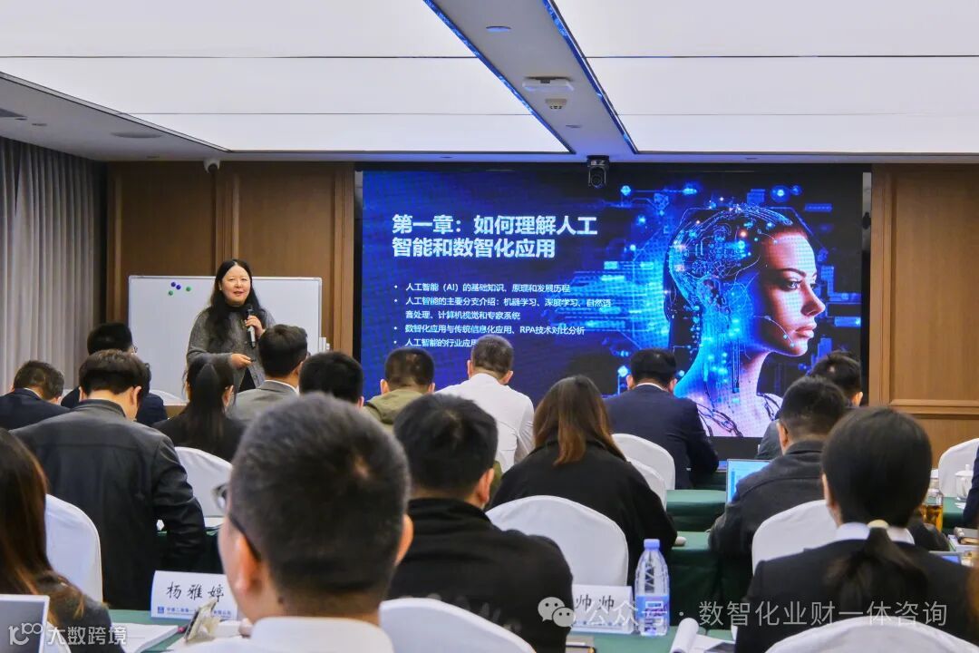 在为期一天的内训中,潘晓蕾女士围绕“财务数智化”的核心理念,为中建二局的同事们带来了全面而深入的讲解。她首先阐述了人工智能和数智化应用的基本概念,帮助大家建立对这一领域的初步认知。接着,她详细分析了企业数智化发展的现状和趋势,为大家揭示了数智化转型的必然性和紧迫性。