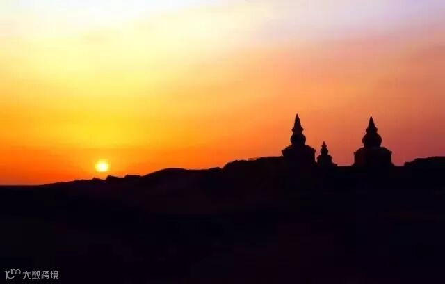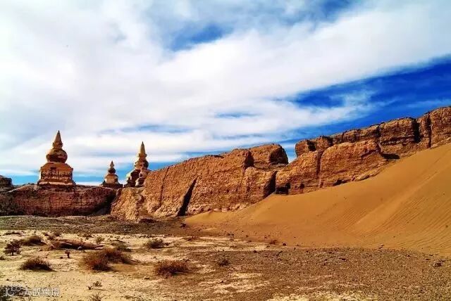 佛塔是用土坯垒成,虽经数百年的风沙侵袭,今天依然耸立云端。最高的那座13米高的西藏覆钵式佛塔,古朴,圆融,安详,成为黑水城独具魅力的标志。