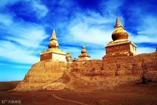 走进黑水城是在一个阳光明亮的下午,天空蓝得耀眼,没有一丝云彩。在黑水城众多的建筑中,宗教建筑是这座古城的一大特色。