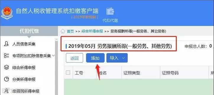添加好人员之后,我们就进入综合所得申报模块,点击劳务报酬所得(一般劳务、其他劳务)