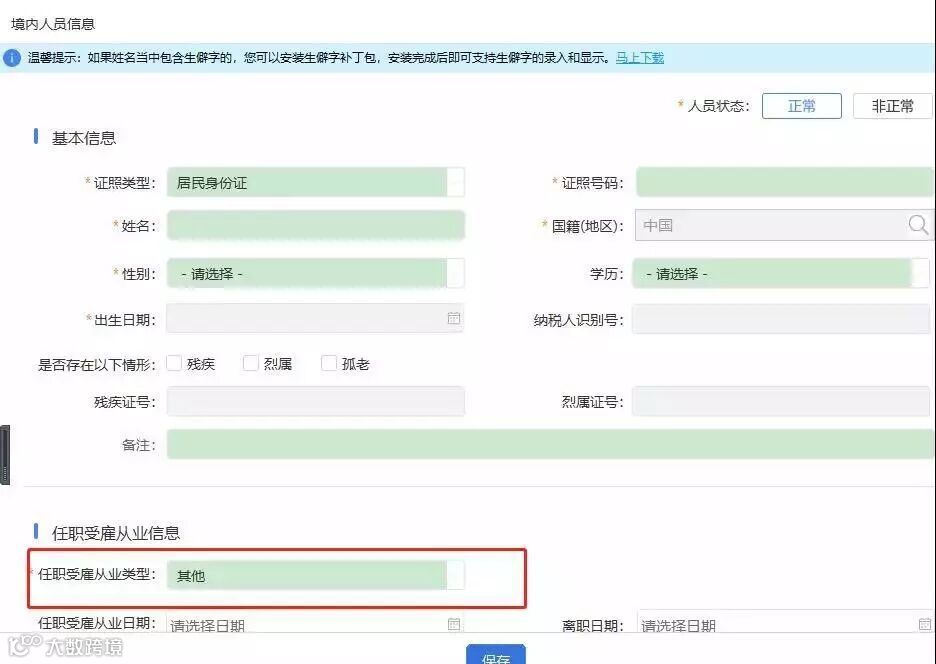这里需要采集劳务提供者的身份信息,同时要特别注意,任职受雇选项不能选择雇员,如果选择雇员,那就不能按照劳务报酬申报,受雇的人默认就是工资薪金。
