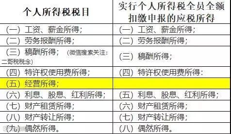 我们一对比,可以发现,只有经营所得不属于实行个人所得税全员全额扣除申报的范围。